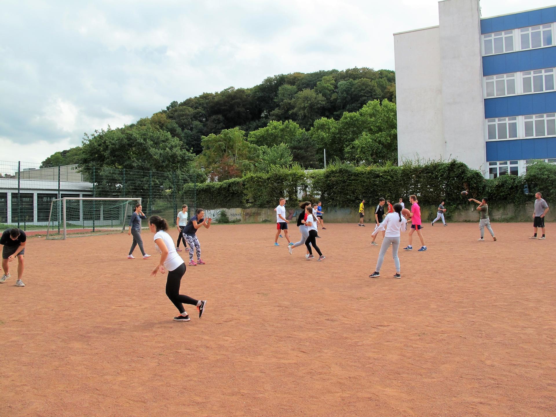 Unsere Schülerinnen und Schüler genossen diese besondere Unterrichtsstunde, die auch noch komplett auf Englisch stattfand und somit sogar als bilinguale Sportstunde durchgehen könnte. Aber auch Coach Joe war beeindruckt von dem Talent und dem Ehrgeiz des Sportkurses und lud alle Schülerinnen und Schüler ein, doch mal ein Probetraining bei einer der Jugendmannschaften zu absolvieren oder in der kommenden Saison ein Spiel der Profis zu besuchen.