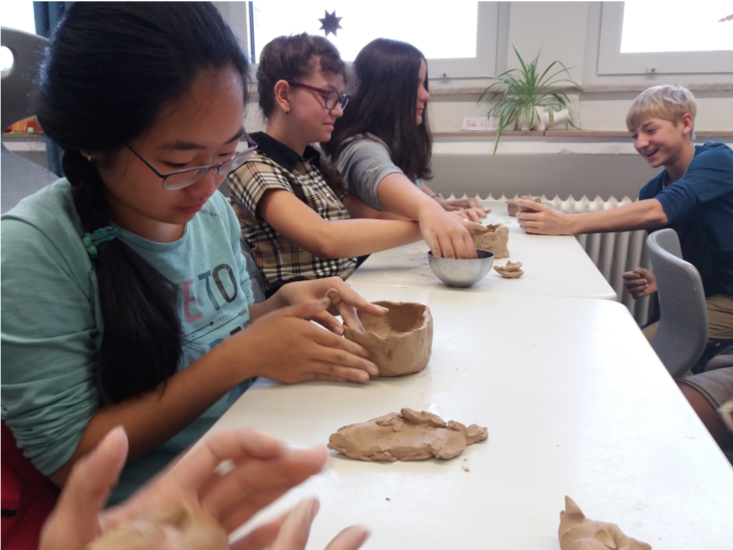 Das antike Griechenland zu behandeln, ist spannend. Noch spannender wird es, wenn man die Hände in den feuchten Ton steckt und versucht den griechischen Künstlern nachzueifern. Dies ist gar nicht so einfach. Doch am Ende haben alle Schülerinnen und Schüler eine Vase oder Schale hergestellt und sind stolz auf ihre Arbeit.