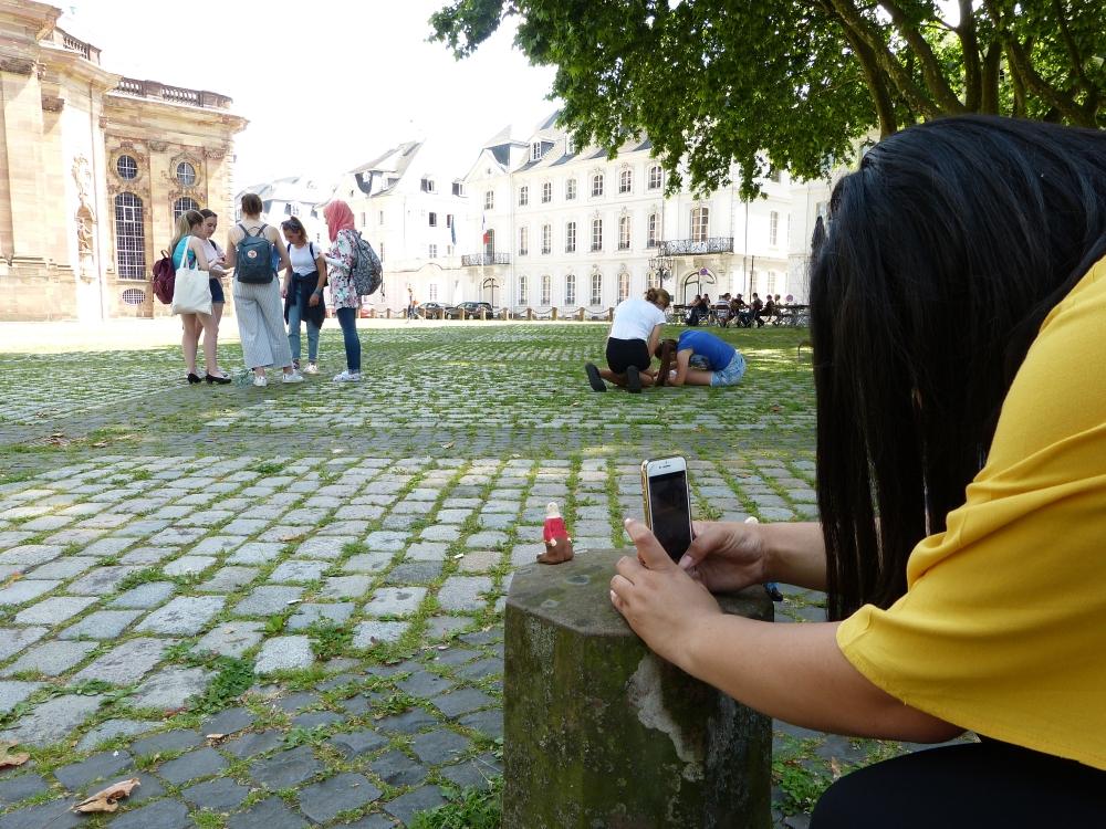 Realisiert wurde das Projekt auf dem architektonisch bedeutsamen Ludwigsplatz, dem die SchülerInnen mit Hilfe der kleinen Gäste neue Perspektiven abgewinnen könnten.