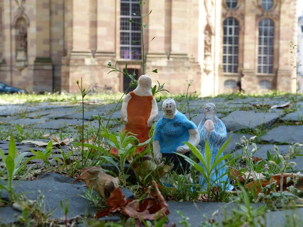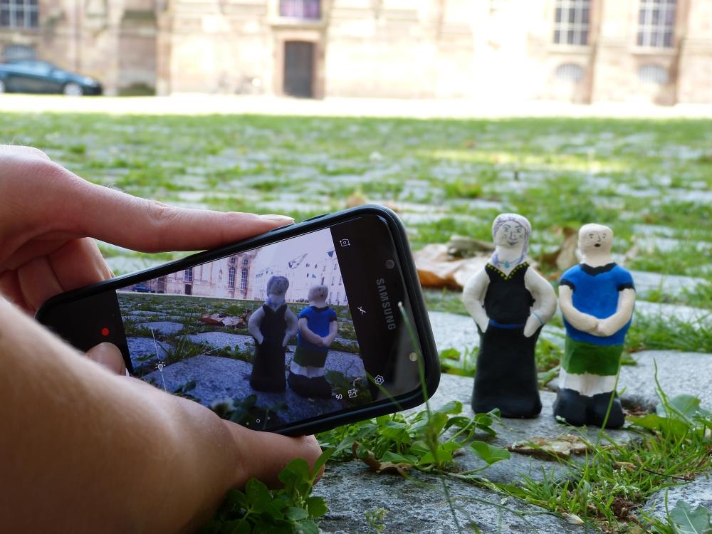 Aufgabe: Modellieren einer kleinen Tonfigur, Bemalung, fotografisches Spiel mit Größenverhältnissen